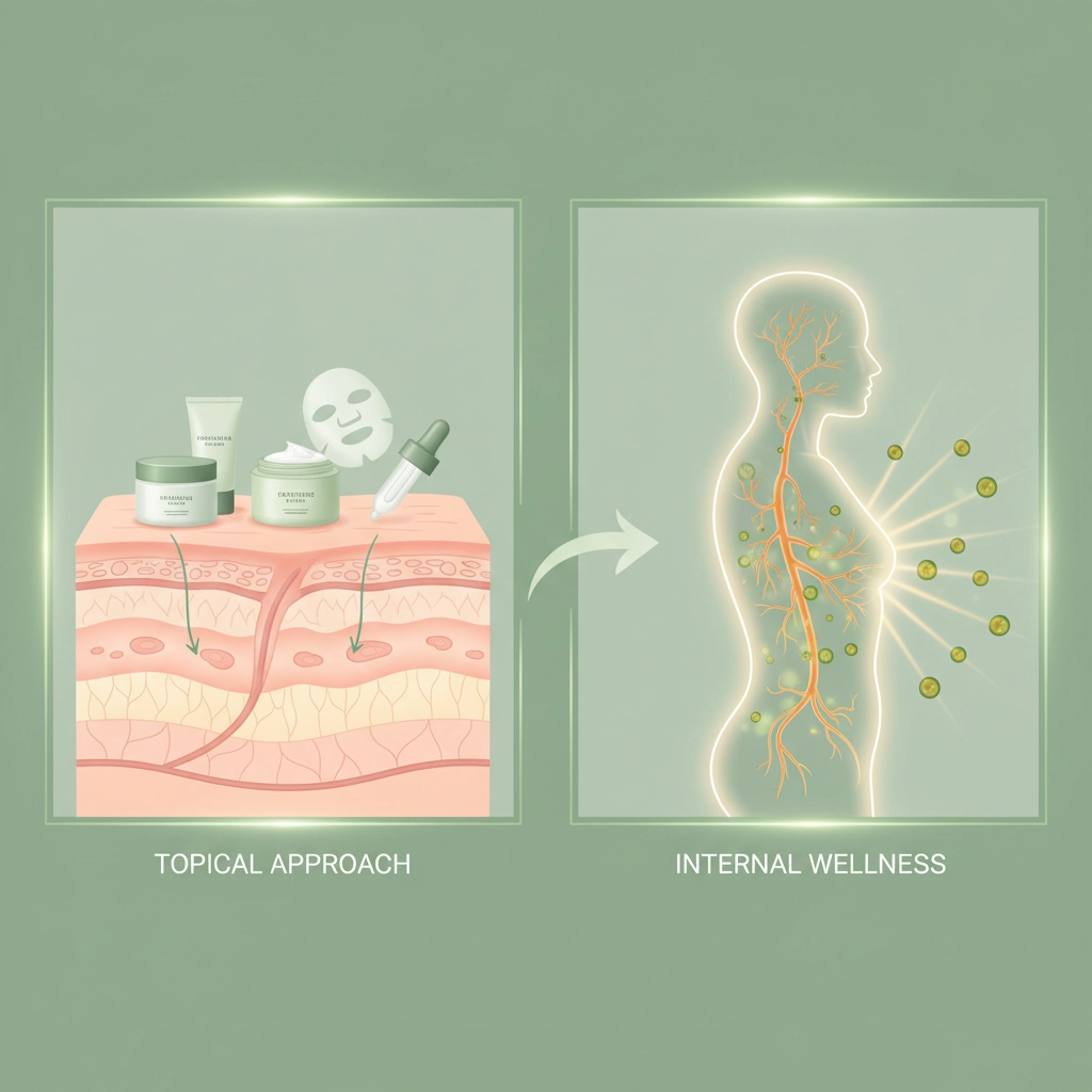 When you take collagen peptides, they don't magically appear on your face. Your body breaks them down, processes them, then potentially uses them for skin repair. This internal approach can reach deeper skin layers that topical products can't touch.